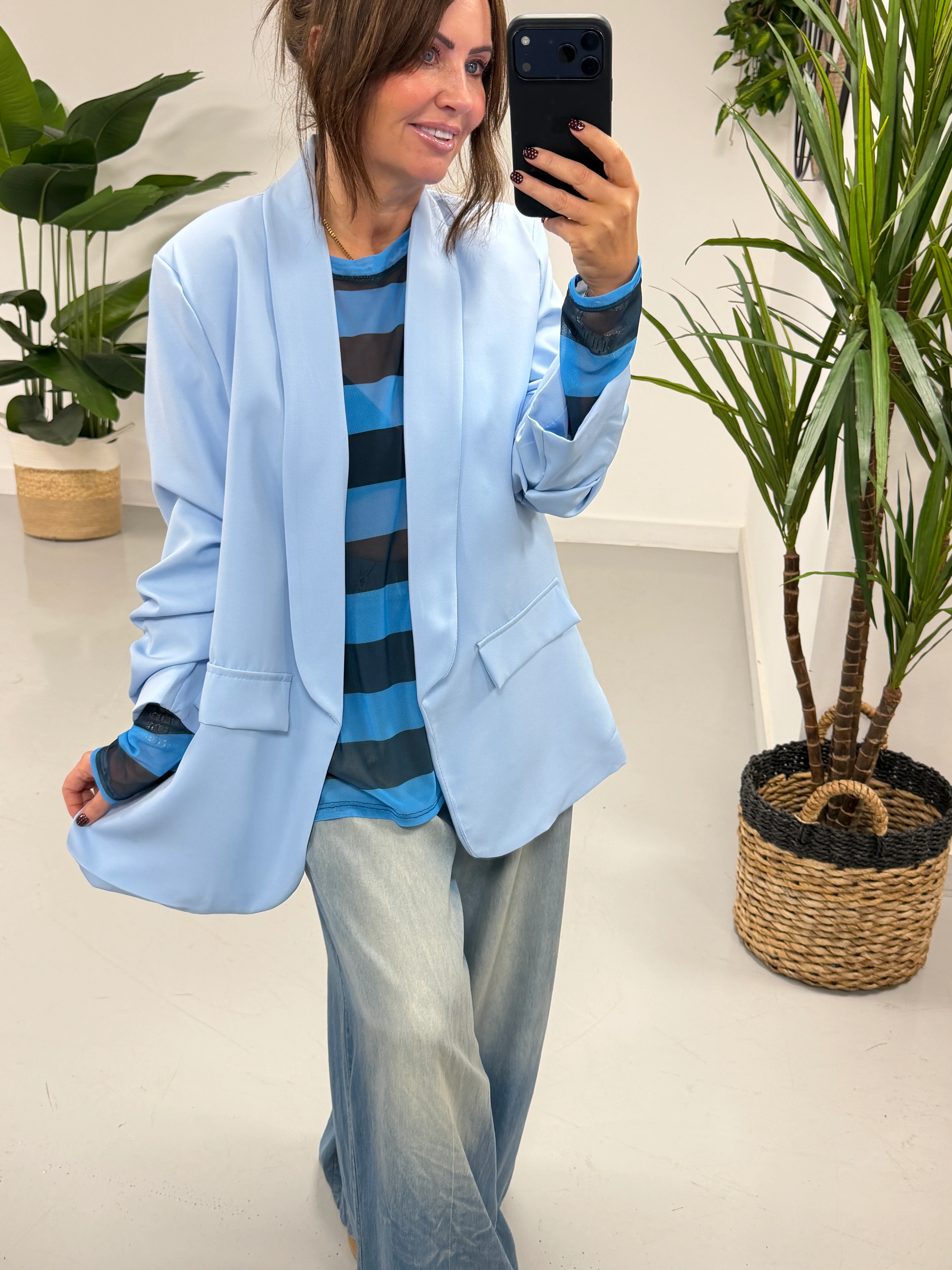 -70%Ruched Sleeve Blazer - Baby Blue—