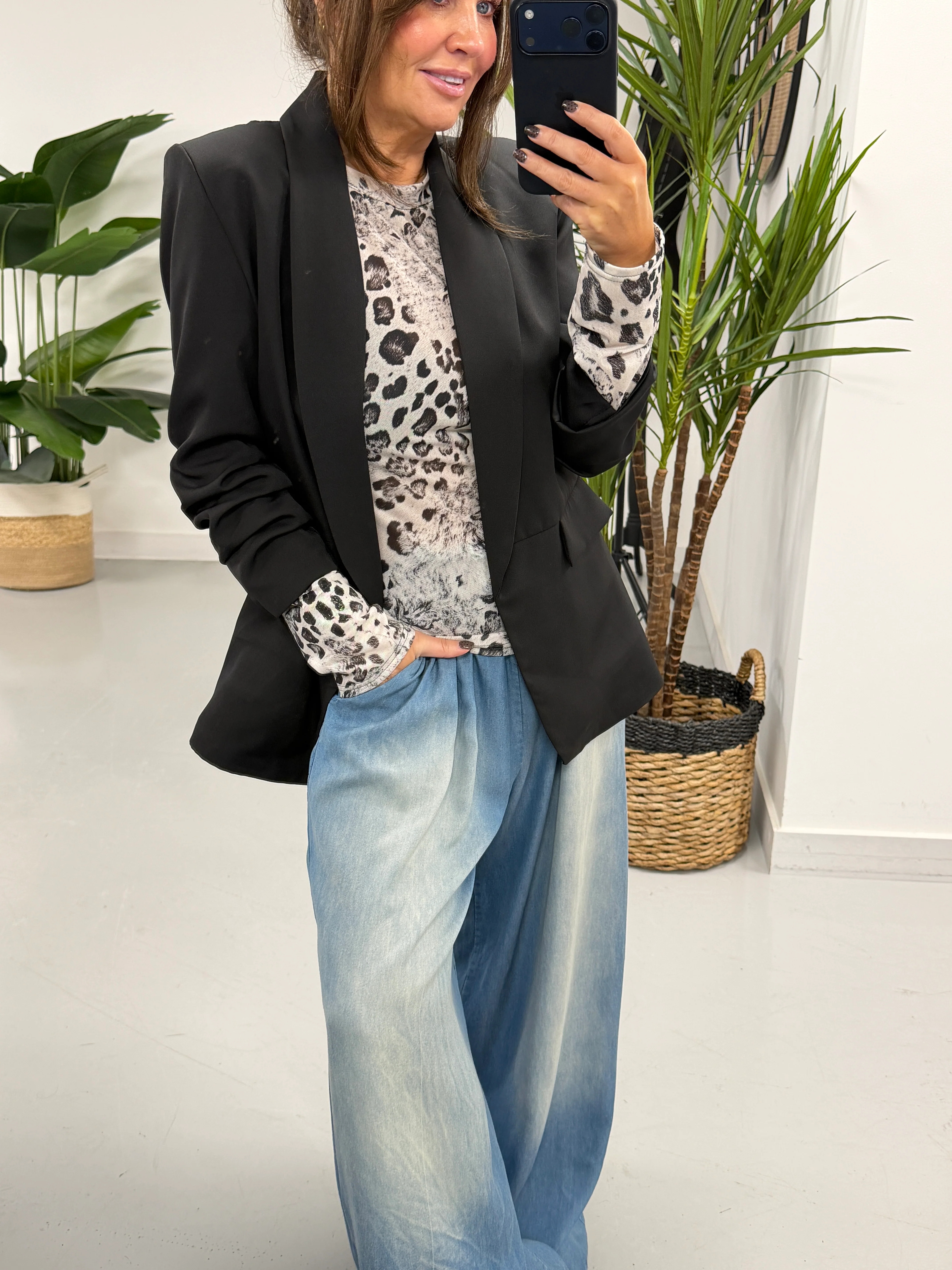 Ruched Sleeve Blazer - Black (Std sizes)